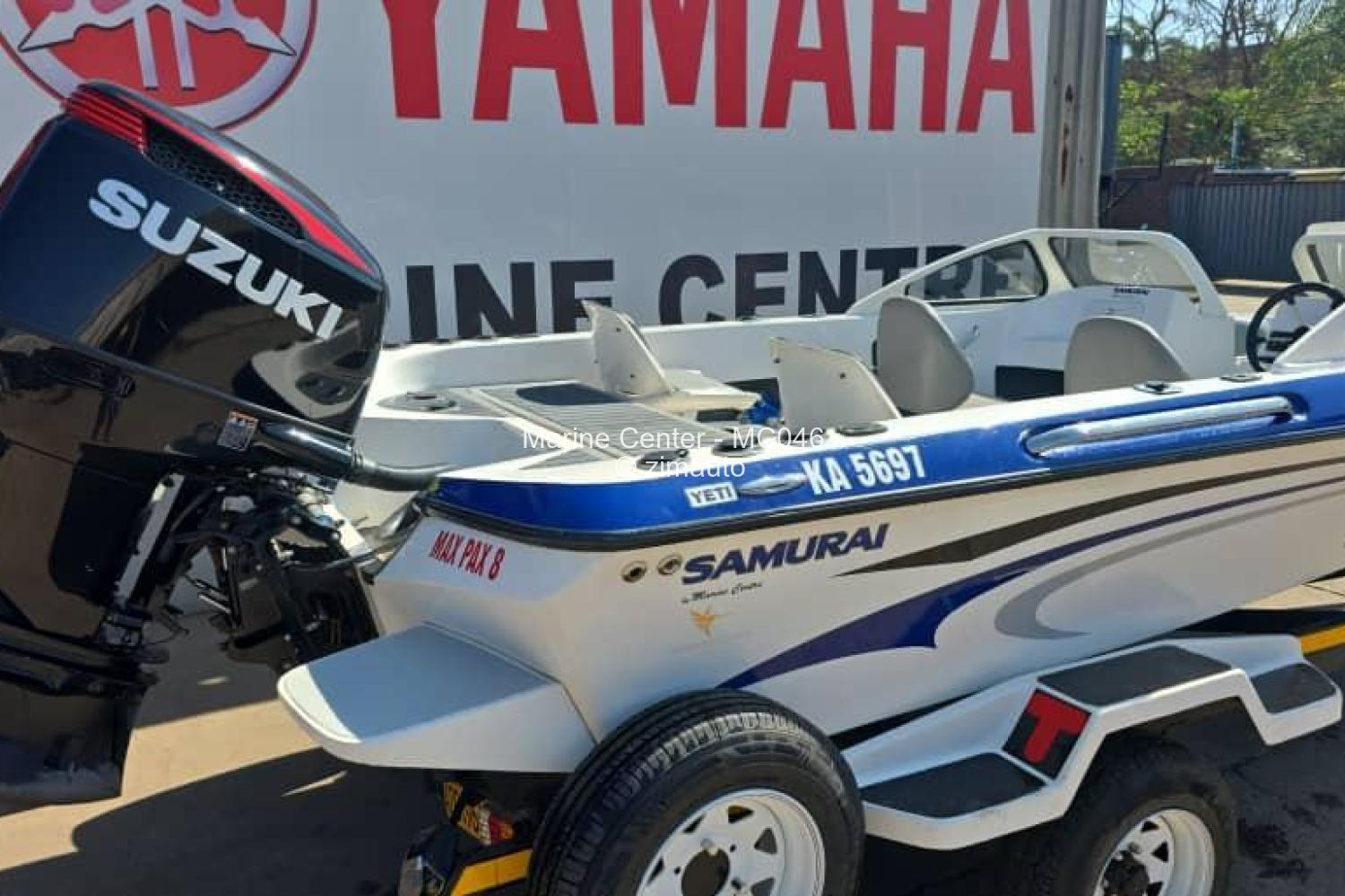 Boat Model: 19ft Samurai Boat on Trailer Outboard: Suzuki 250SS - 87hrs Extras: Front Deck, Fishing Chair, Bass Motor Mount, rear deck with built in livewell, Oil filled axle with brakes, Trailer reg is up to date, KA # 2x Bermuda steps & S/S propeller (on motor) & there is a spare propeller. Comes with: 6x 25lt Off Shore Tanks 2x Built in cooler boxes 2x Batteries Music System with 4x speakers 2x Umbrellas Jockey Wheel Winch
