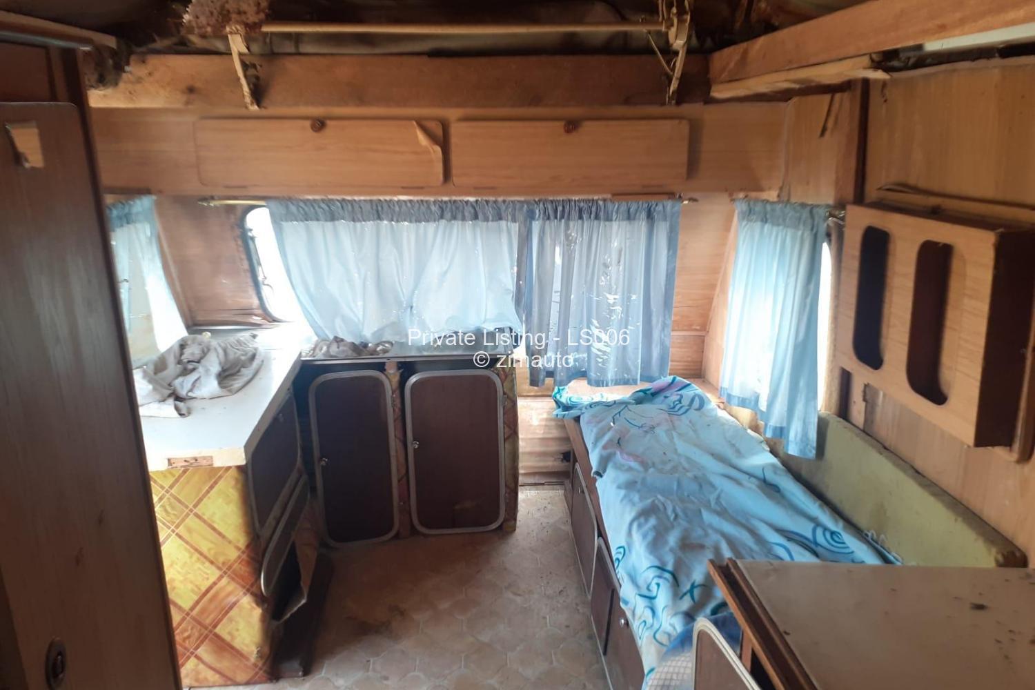 CAMPING CARAVAN.. Selling as Project or Repair. Needs renovation. Suitable for Onsite Accomodation, Farming, Mining, Construction uses, Holidays & Camping, Office, Workshop, Events, Mobile Kitchen, Chips/Burger Van, Mobile Shop, Trailer conversion etc. Caravan has front and back sleeping/seating areas, kitchen area, sink, cupboards and wardrobe. No appliances. Floor is solid. Needs a good carpenter to reboard in some areas. Sold as seen. Unregistered. Towable, tyres pumped up ready to go. Viewing Rusape near Tollgate